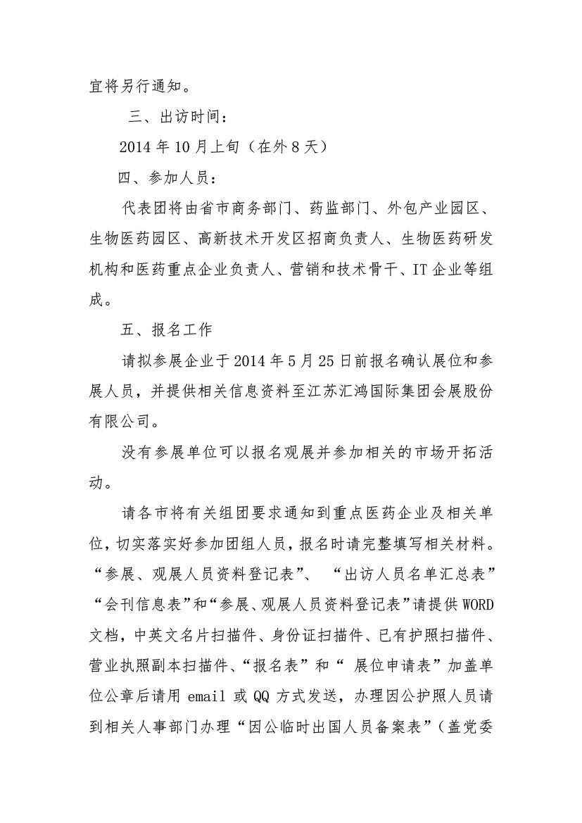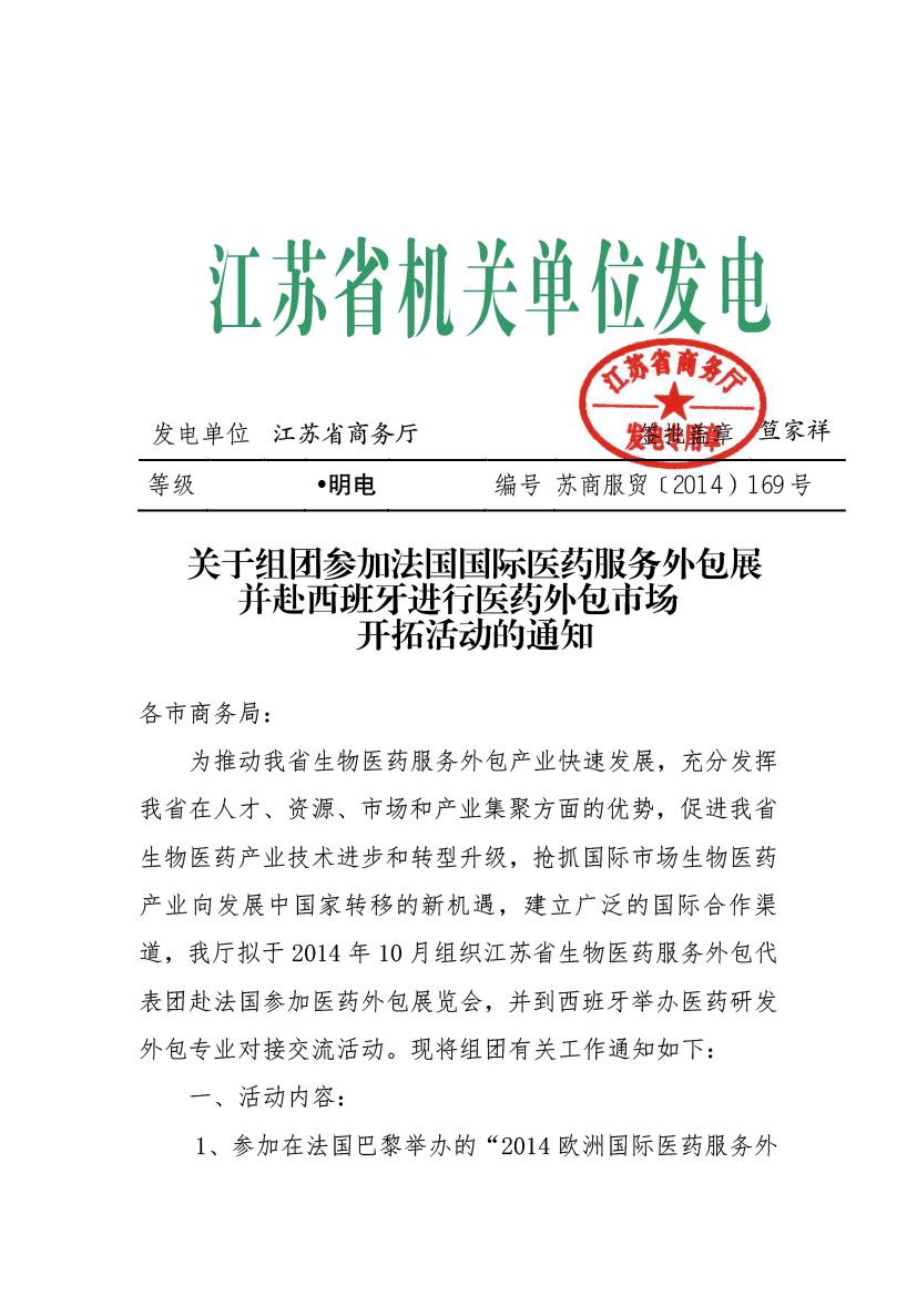 關于組團參加法國國際醫(yī)藥服務外包展并赴西班牙進行醫(yī)藥外包市場開拓活動的通知
